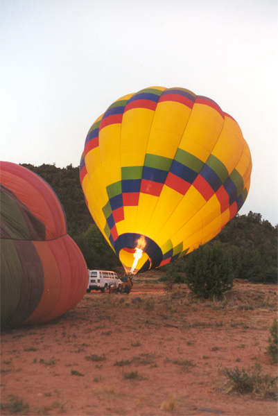 They start out with just a big gas-powered fan, then they start up the burners to fill the balloon with hot air.